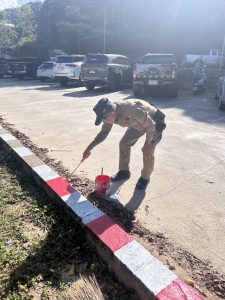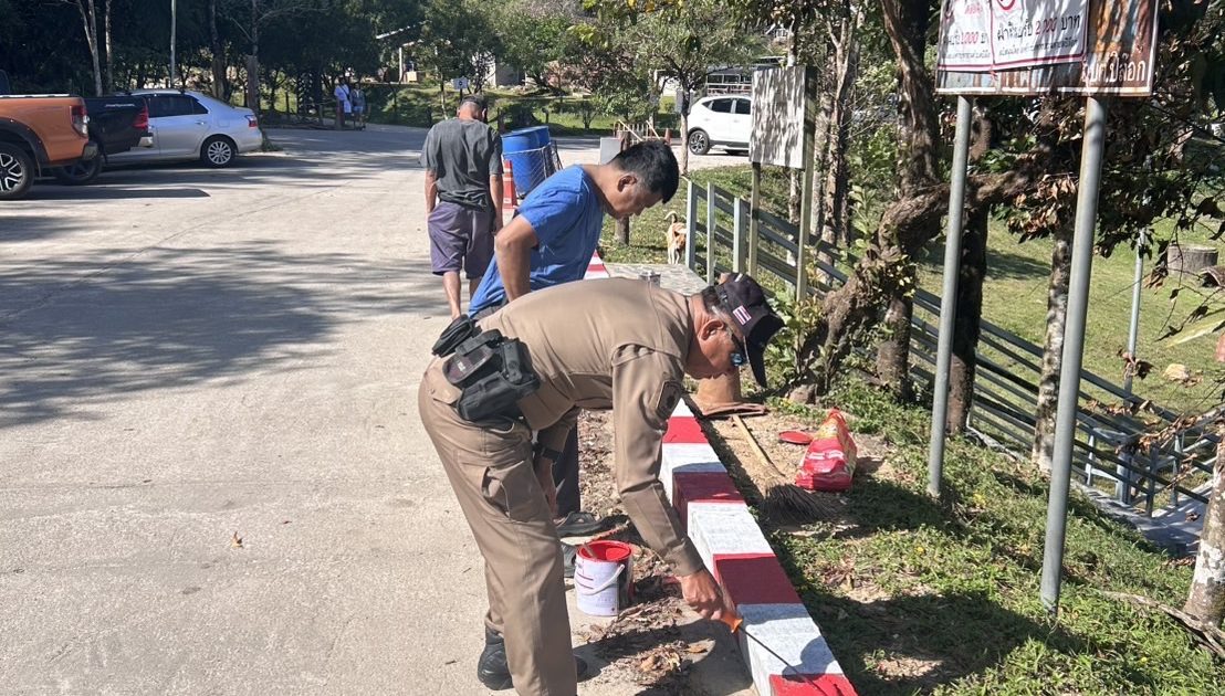 ร.ต.ท.ทวีศักดิ์ ไชยคงทอง ปฏิบัติหน้าที่ เจ้าหน้าที่จราจร ซ่อมแซมขอบถนน