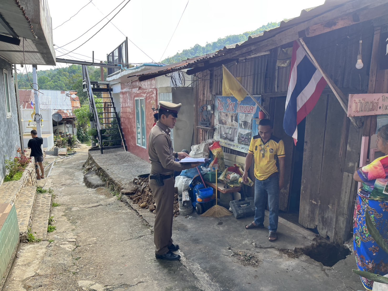 งานสอบสวน ร้อยเวร 30 ได้เดินทางตรวจที่เกิดเหตุทะเลาะกับเพื่อนบ้านเรื่องที่ดิน และเกิดการชกต่อยกันขึ้
